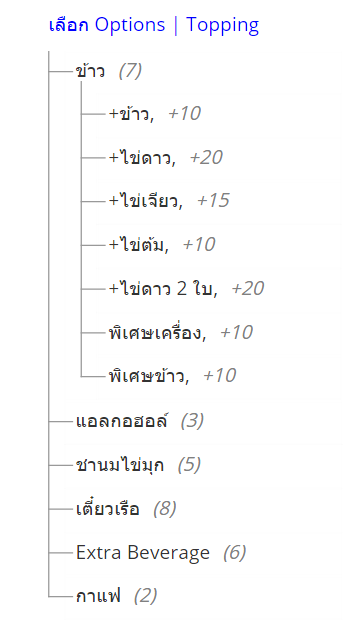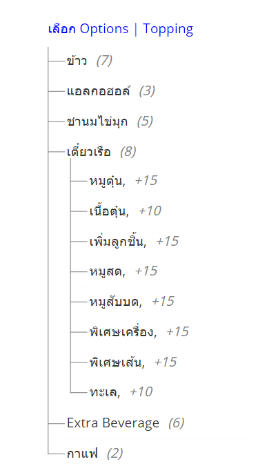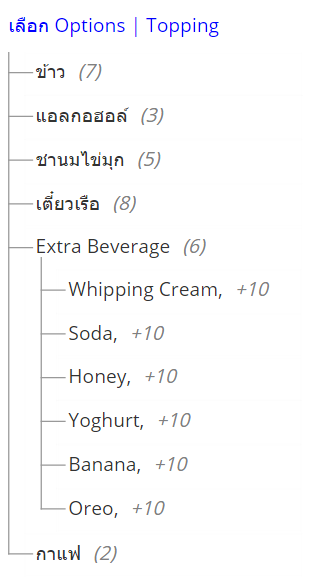หมายเลข 8. จะรายงานยอดขาย 70บาท (โดยรวมราคา options/ toppings แล้ว)