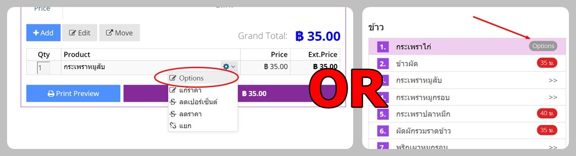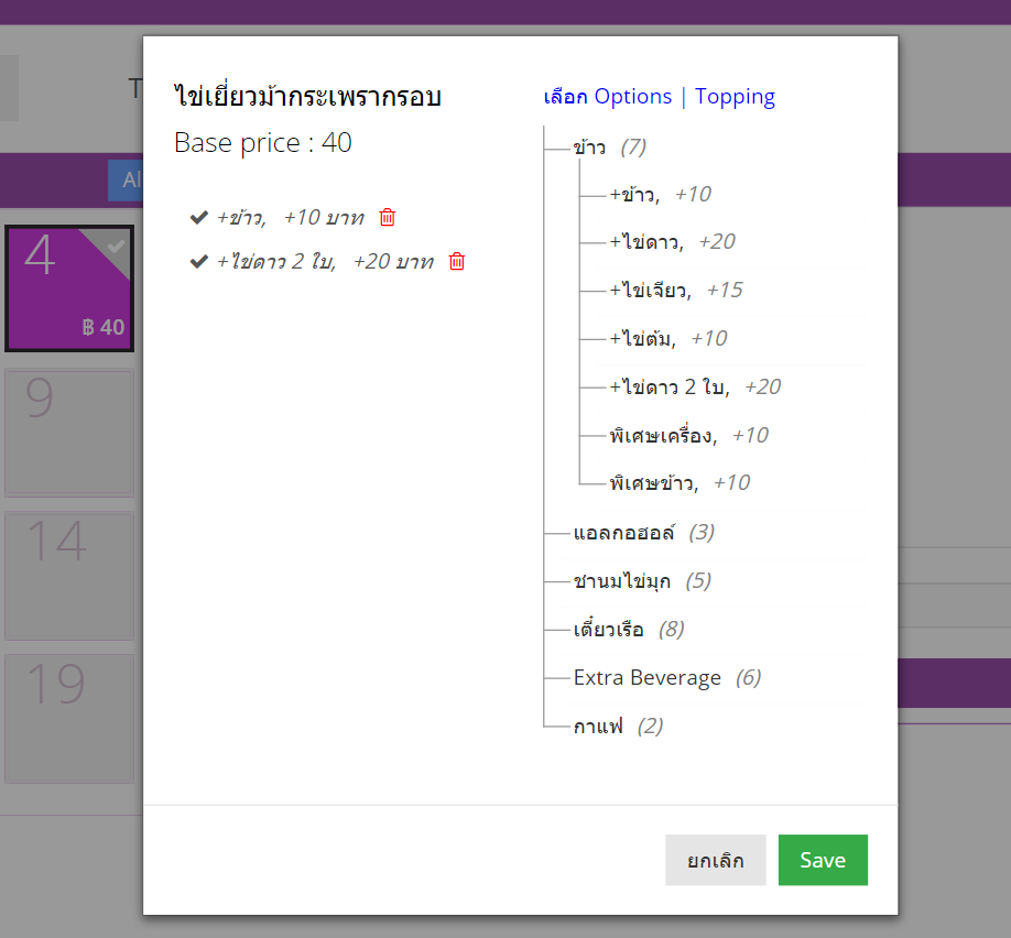 เช่น ข้าวกระเพาหมูกรอบ Base-price : 30.00 บาท